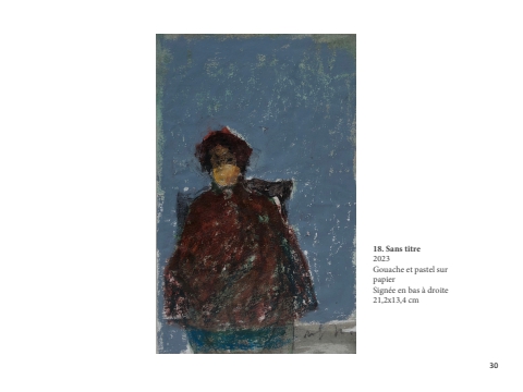 18. Sans titre2023Gouache et pastel surpapierSign%u00e9e en bas %u00e0 droite21,2x13,4 cm30