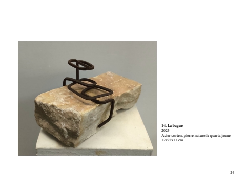 14. La bague2023Acier corten, pierre naturelle quartz jaune12x22x11 cm24