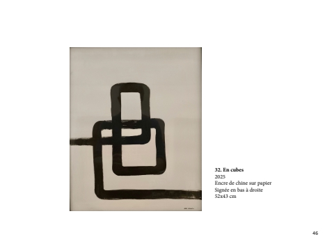 32. En cubes2025Encre de chine sur papierSign%u00e9e en bas %u00e0 droite52x43 cm46